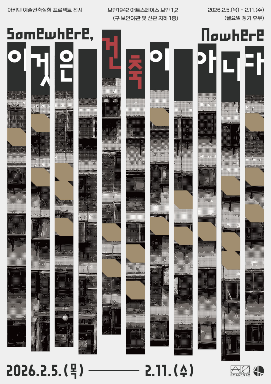 아키텐 예술건축실험 프로젝트 전시|이것은 건축이 아니다: Somewhere, Nowhere아키텐 예술건축실험 프로젝트 전시는 건축을 하나의 완성된 결과물이 아닌, 사고와 실험의 과정으로 바라보는 전시다. 이번 전시는 ‘이것은 건축이 아니다: Somewhere, Nowhere’라는 제목 아래, 건축과 예술의 경계를 질문하는 다양한 시도를 소개한다.전시 개요이번 전시는 보안1942 아트스페이스 보안 1, 2관에서 진행되며, 기존 보안여관 건물과 신관 지하 공간을 함께 활용한다. 전시 제목처럼 ‘어딘가이면서 동시에 어디에도 없는(Something, Nowhere)’ 상태를 통해, 건축의 정의와 역할을 다시 생각해보는 데 초점을 맞춘다.전시명: 아키텐 예술건축실험 프로젝트 전시 「이것은 건축이 아니다: Some..